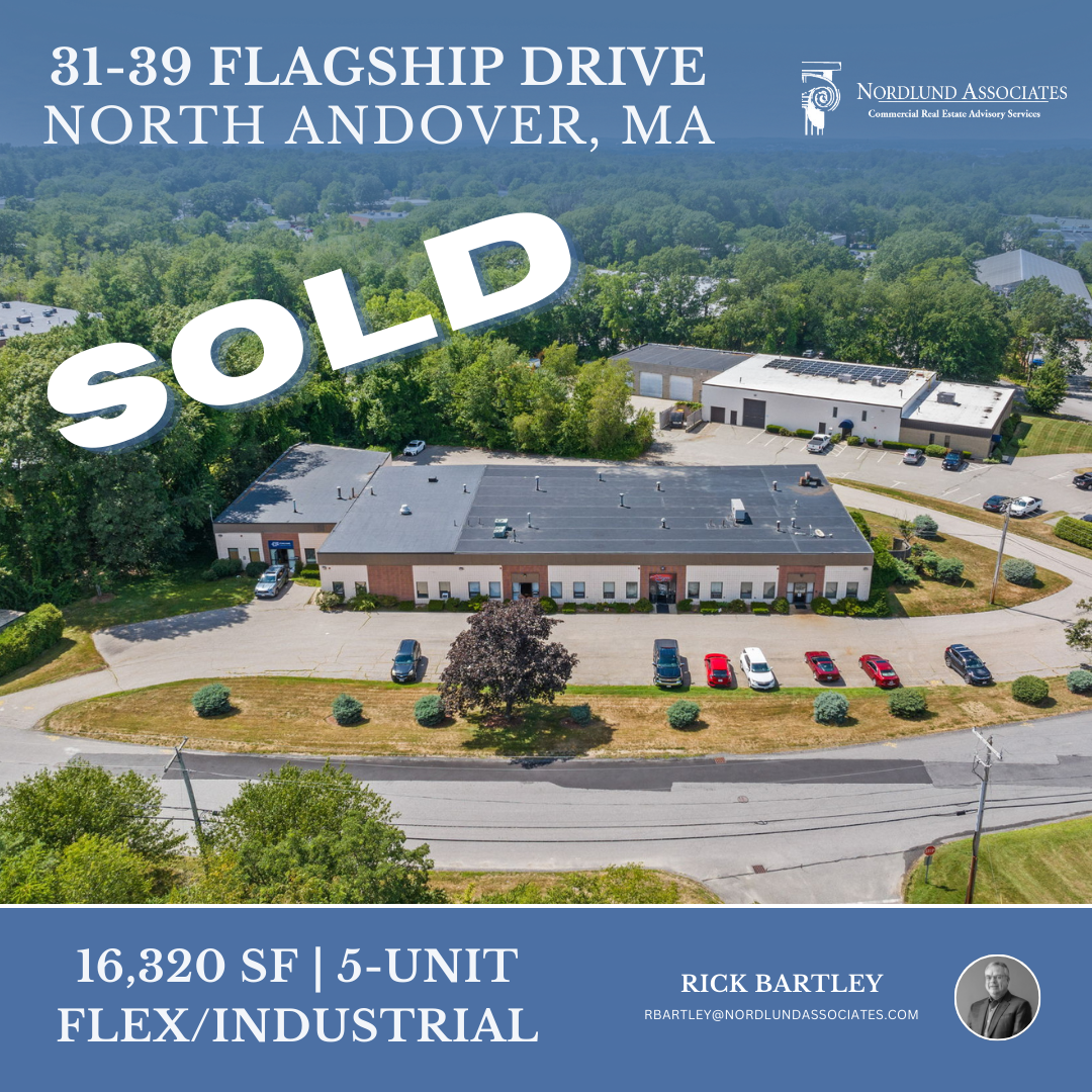 NORTH ANDOVER, MA – Nordlund Associates, Inc. is pleased to announce the sale of 31–39 Flagship Drive, a five-unit flex/industrial building totaling 16,320± square feet in North Andover, Massachusetts. Rick Bartley of Nordlund Associates represented the seller, C & P Realty Trust in the transaction. The buyer was Martir Realty, LLC.